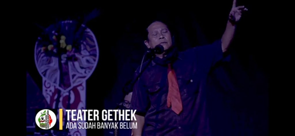 Kami sempat bertanya, kenapa memilih “Gethek” sebagai nama kelompok teater. Ia bercerita waktu dulu berdiskusi dengan teman-temannya, sebenarnya banyak usulan-usulan nama untuk kelompok teaternya. Usulan tidak sekedar nama, namun ada makna dari nama yang diusulkan. “Dulu ada yang usul namanya “Teater Linggis”, lho kenapa linggis?. Linggis itukan lurus, kita sebagai seniman harus lurus, dan linggis itukan tajam kedepan, nah kita harus tajam dalam menyampaikan pikiran kita kedepan”, Pak Edon menceritakan kisahnya dengan gaya tetatrikal di hadapan kami.