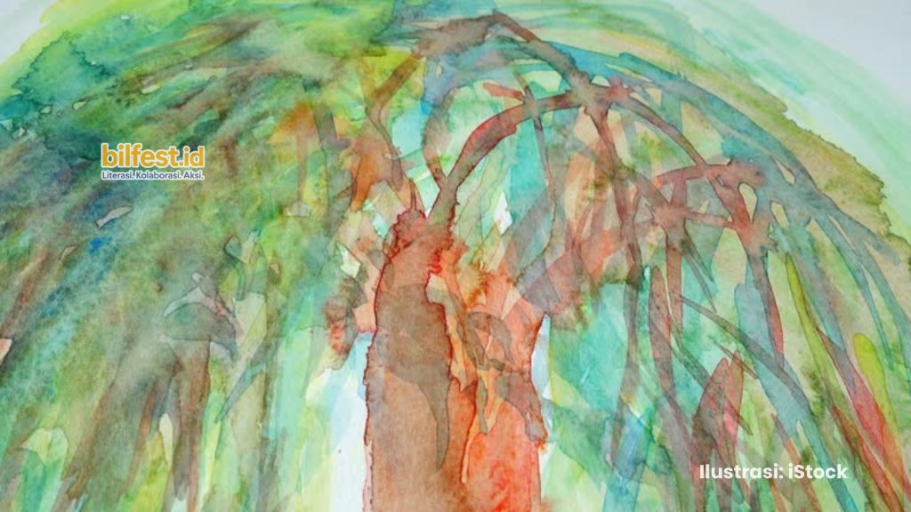 Menjelang sore hari. Angin tanpa diam, membawa bisikan-bisikan pohon beringin ke segala arah. memberikan kabar pada celah-celah obrolan warga yang sedang bertransaksi di pasar. Tak hanya di situ saja tetapi juga sampai di gazebo, tempat warga berkumpul bersama. Yang membuat cerita semakin mendidih dan berlipat-lipar bibir. Pohon biringan, yang sudah berdiri di sana memandang para kepala pemimpin itu, hanya bisa menghela napas panjang, ia tahu, keributan ini sudah terjadi sejak dulu, dan tak pernah menemukan titik gelap, tinggal terang cahaya masing-masing. Dalam berjalannya waktu selalu ada konflik baru muncul, seperti daun-daun kering yang berguguran di bawahnya setiap musim.