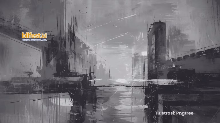 // Kota menyambut dengan gemerlap diri, namun cahayanya tersimpan sunyi, / Tanpa sadar jalan asing kususuri, walau hanya terlihat tawa asing tanpa henti, / Dan aku, masih menyimpan rindu yang tak pernah terbagi. //