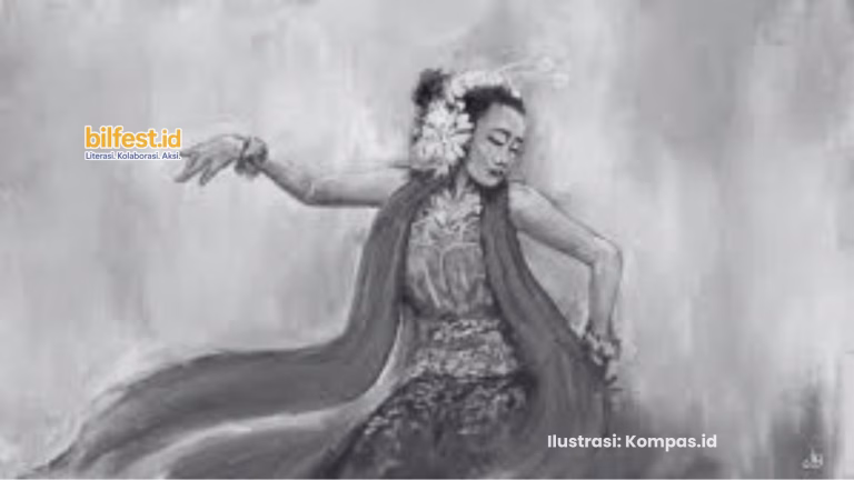// Bukan gadis muda pemain sampur / Tapi lelaki kekar kumis tipis yang berpoles dan bersanggul //