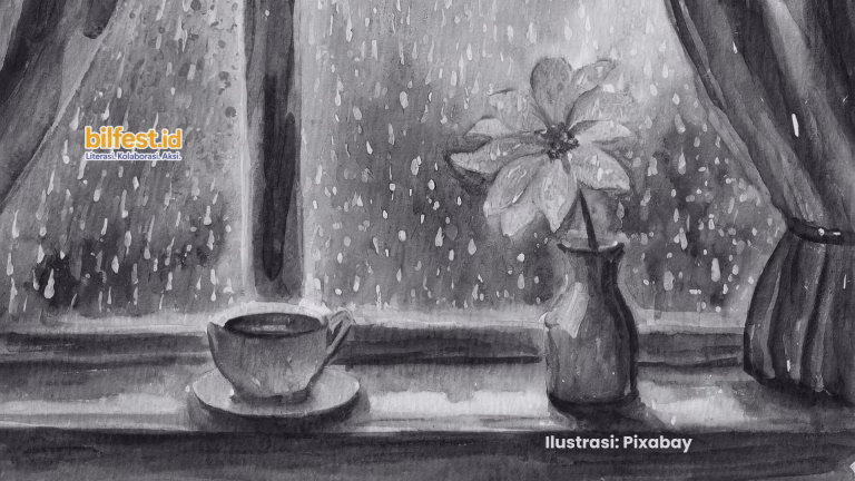// Aku rindu orkestra kecil di atap seng itu, / gesekan daun kering dan retak tanah sebagai nadanya, / saat butir air pertama turun mengeja namamu / yang telah lama berkarat di dasar jiwa. //