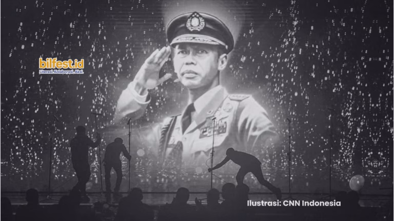// kembang kukuh tak henti tumbuh / dari atas pusara seorang jenderal / merebak tegas PDL-nya di atas kejujuran / dari kampung utara tanah jawa //